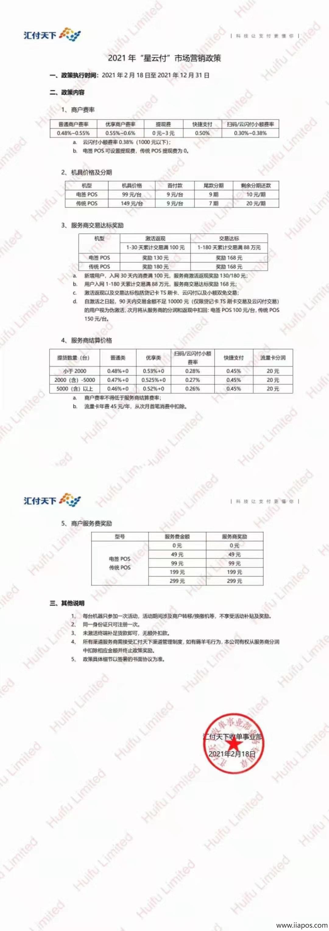 2021-10-25汇付天下4G鸿POS代理政策