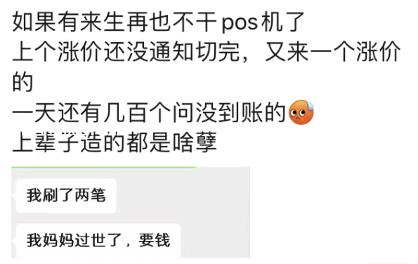 无数代理商在朋友圈发泄情绪:“如果有来生,再也不干POS机了!”这句话不再是调侃,而是真实的心声。每天睁眼就是涨价通知,前脚刚切完一批机器,后脚又来一个平台宣布上调费率。