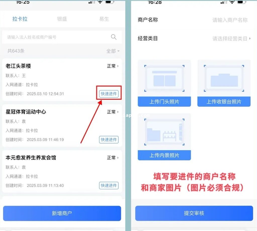 拉卡拉、易生后期快速注册
