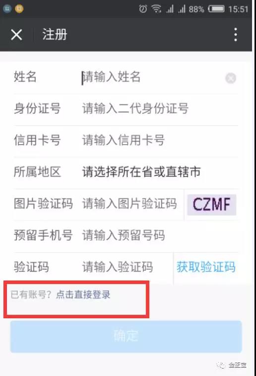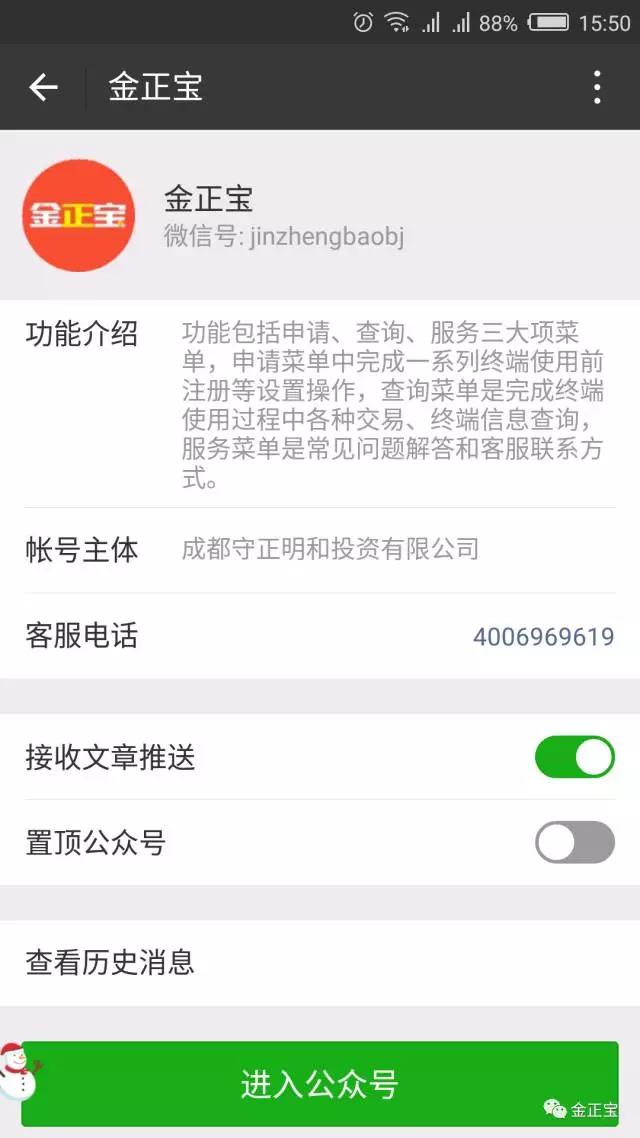 打开微信,搜索公众号“金正宝”(账号:jinzhengbaobj),关注公众号即可进行下一步操作