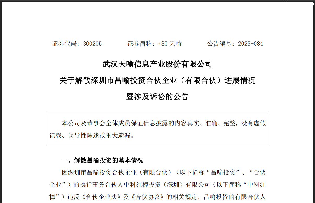 自从普通合伙人中科红樟被除名后,就没人来继任这个位置了。按照相关规定,昌喻投资已经依法进入了解散和清算流程。