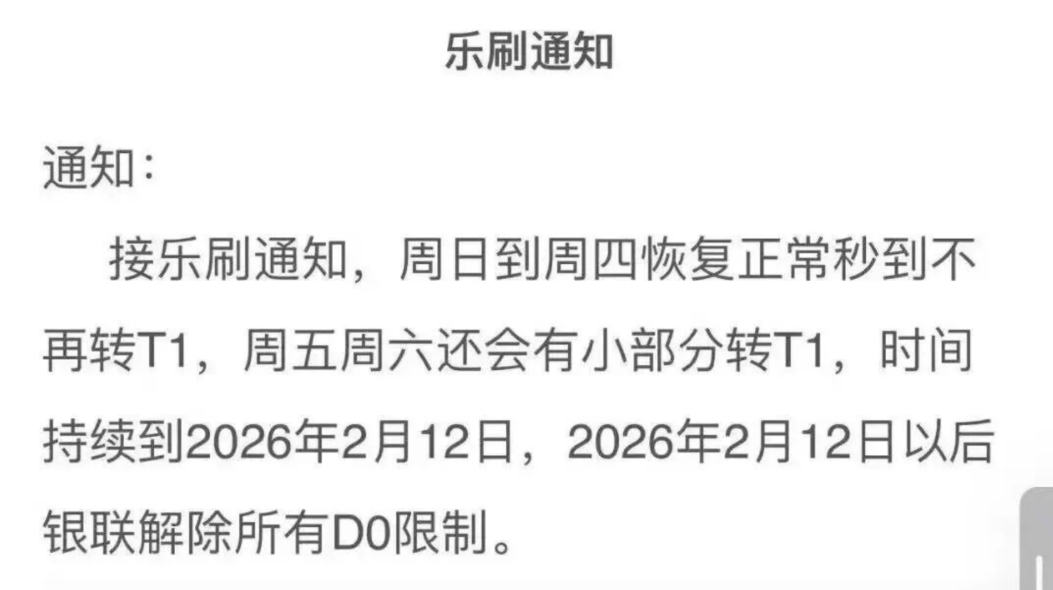 尤其是每逢周五的交易高峰期,用户们最怕出现刷卡后不能秒到,交易订单被转为T+1结算的情况,这样一等就要等上两三天才能到账,严重影响个人与商户的资金周转效率。不过值得庆幸的是,近日有确切消息传出,这种刷卡不秒到的窘境,在2026年2月12日之后将全面恢复D0。
