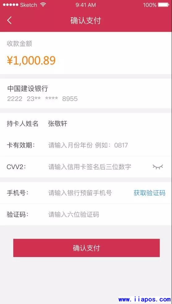 输入完信息,点击“提交”,验证银行卡信息且做绑卡操作,绑卡成功,会自动进入支付流程;如果该卡已绑定,则直接进入支付流程。